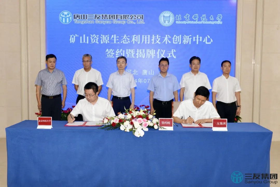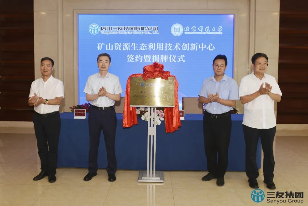 7月15日,唐山三友集团-北京科技大学矿山资源生态利用技术创新中心签约暨揭牌仪式举行,中国工程院院士邵安林,唐山市副市长张涛,三友集团党委书记、董事长王春生,曹妃甸区党组成员、副区长郭海军,共同为创新中心揭牌。集团总经理、党委副书记李建渊出席签约仪式。总工程师马德春主持活动。